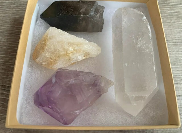 Amethyst Citrine Quartz Smoky Quart Points: 4 Crystal Collection,Healing Crystal